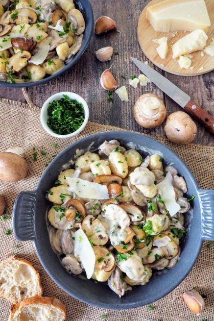 Une autre variété de pâtes italiennes ? Gnocchis + sauce aux champignons crémeuse, la gourmandise est à son paroxysme.